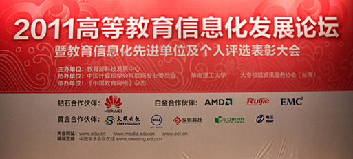 12月6日,由教育部科技发展中心主办,中国计算机学会互联网专业委员会等单位协办,《中国教育网络》杂志承办的“2011高等教育信息化发展论坛暨教育信息化先进单位及个人评选表彰大会”在友谊宾馆隆重召开。来自全国相关研究领域的专业人士,教育厅信息化主管部门有关领导,台港澳地区高校的主管领导,高校主管副校长,信息办、网络中心、图书馆等部门的负责人,高校信息化部门业务骨干以及知名企业代表近400人参加了此次会议。