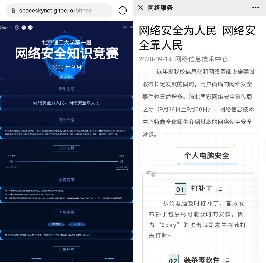 “国家网络安全宣传周”是学校网络信息安全常态化宣传工作的重要组成部分。2020年9月,网络信息技术中心再度深入开展网络安全系列主题教育活动。学校信息化部门根据本年度实际情况专门制定了宣传计划和宣传内容,采用线上线下相结合、宣讲互动相结合的多种渠道和形式,紧紧围绕“网络安全为人民,网络安全靠人民”主题展开网络安全宣传工作,力求取得最大的宣传效果,切实提升广大师生的网络安全意识。